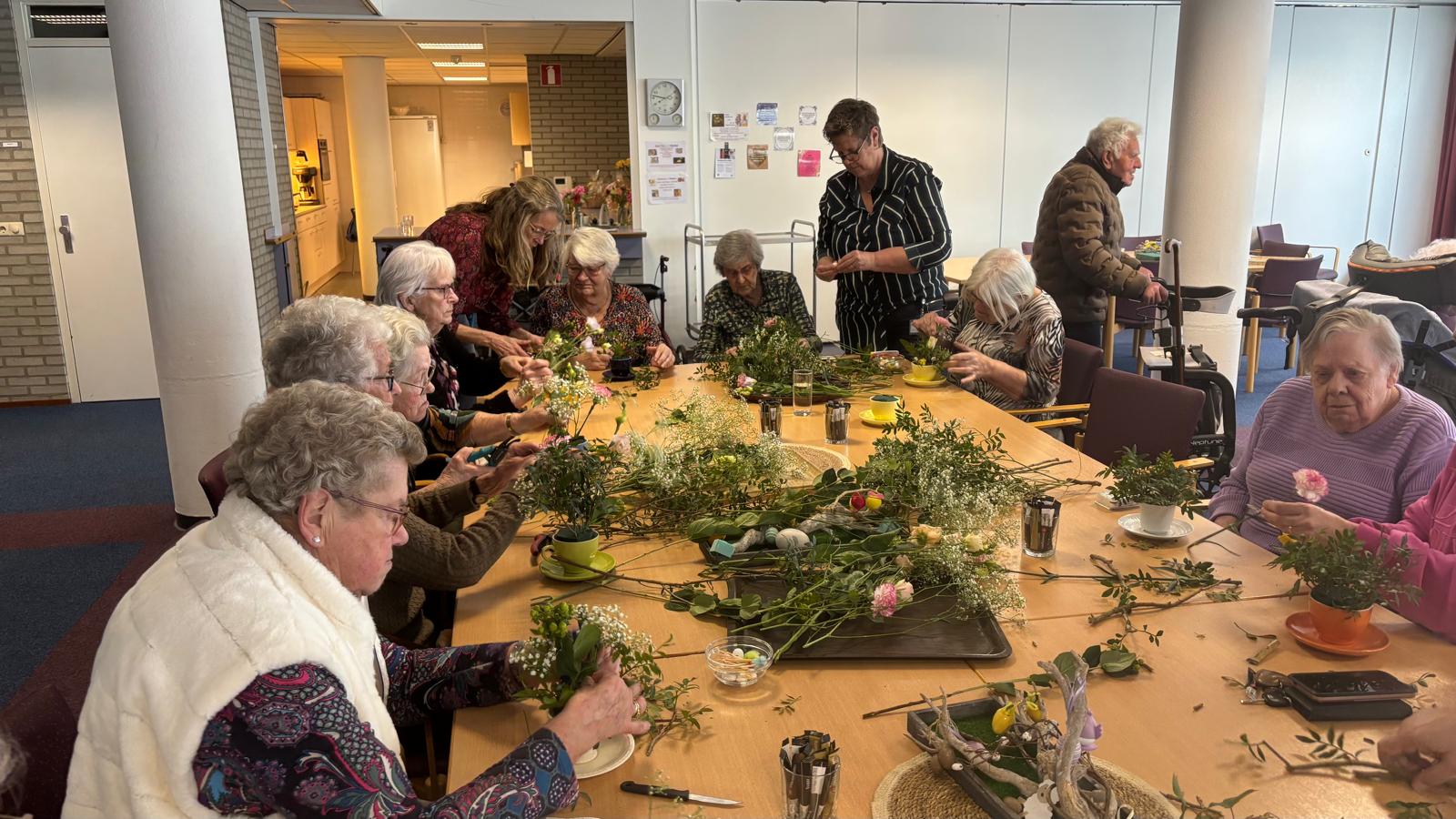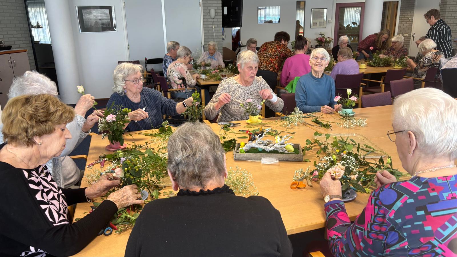 Vanmiddag hebben we een voorjaarsbloemstukje gemaakt In een kop en schotel. Dit deden we samen met de bewoners van de woningen in ‘t Waellant. In totaal waren wij met ongeveer 30 personen. Hoe leuk is dat!